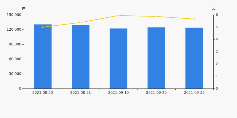 2021年8月20日至今,公司股东户数有所下降,区间跌幅为5.08%。2021年8月20日至2021年9月30日区间股价上涨13.23%。
