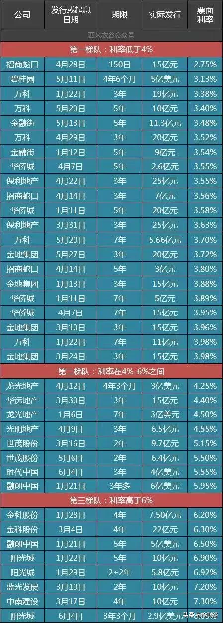 在上一篇 《值得警惕的开发商之阳光城 》的文章中,我说了在房地产强监管时代, 买房该如何避免踩坑 。并教了大家最简单实用的一招: 看开发商的融资/发债利率。 利率越高,说明开发商的资金链大概率越紧,出事的概率也越大。 因为开发商融资/发债利率的高低,是衡量其资金链和现金流优劣最直观、最有效的指标。 大家可以自己去查查泰禾、华夏幸福暴雷前的融资利息(图3),高出头部开发商万科多少了? ( 图4),一对比就能明白:高息融资可能就是地产商暴雷前的征兆 。