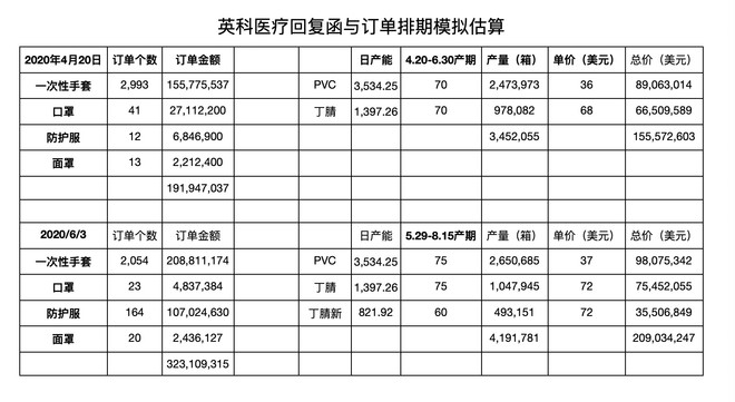 2、你得清楚英科医疗每次回复函时在手订单的截止期限,即产能安排周期。这个数据你可以通英科医疗的业务渠道,比如他的手套客户(福步论坛很多倒爷)都知道英科医疗的产品排期。上次订单的时候,我了解的信息是订单排期是到6月底,这次回复函的时间订单排期到8月初,我的信息的真实性也无从考证,只能估且相信。