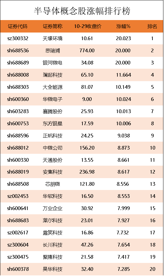 半导体概念股涨幅排行榜