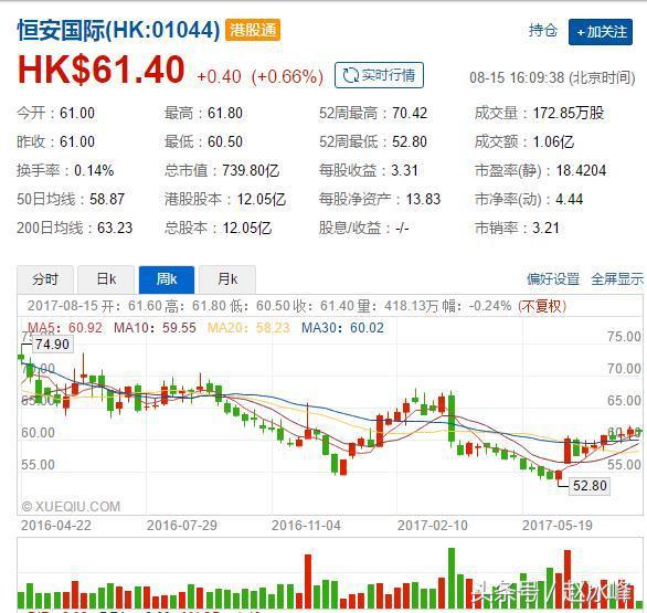 看过去的净利润就能看出,恒安非常稳定,一直都在35亿上下徘徊,而晨鸣过去几年最多也就10个亿利润,今年由于供给侧改革,它的纸浆生意爆赚,利润暴增,而恒安不做纸浆生意。从股价上也可以看得出。