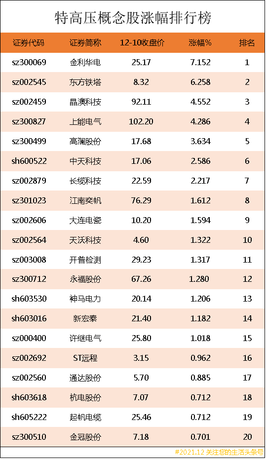 以上就是为读者们带来的特高压概念股涨幅排行榜的相关信息,本文是根据有关数据及近期事件所撰写分析文章,并不构成投资建议,据此操作,风险自担!(本文属于非商业性文章)