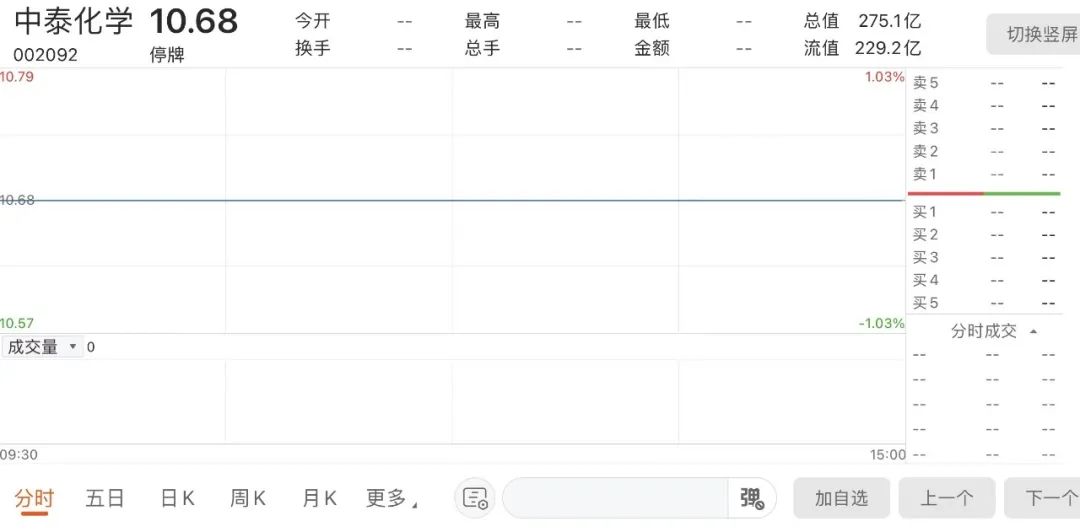 中泰化学自1月17日开市起停牌,预计时间不超过10个交易日。其最新收盘价为10.68元/股,总市值275.12亿元。
