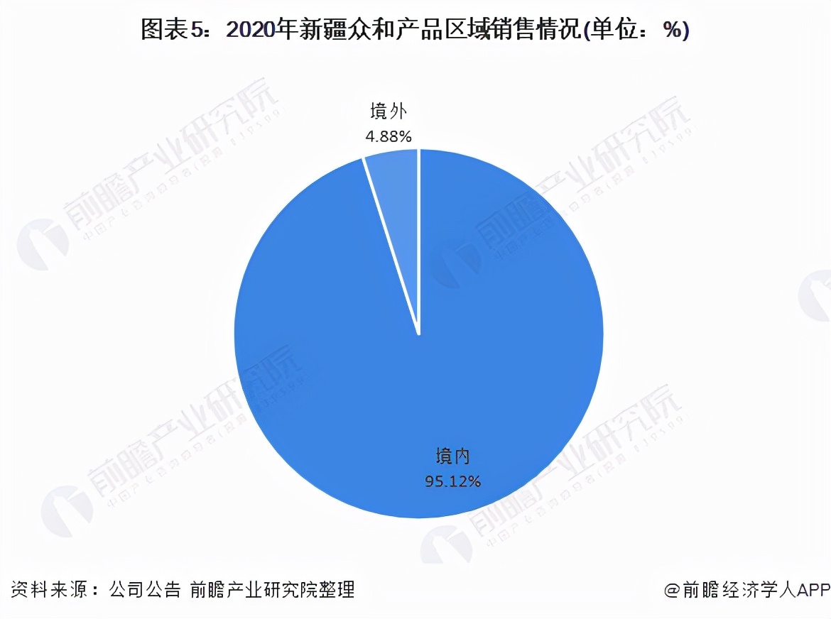 从销售区域来看,2020年新疆众和以国内市场为主,其中来自境内的营业收入占比为95.12%。境外收入占比为4.88%。