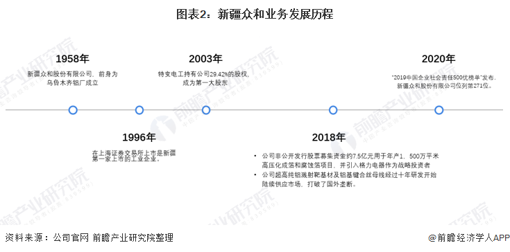 新疆众和前身乌鲁木齐铝厂成立于1958年,1996年在上海证券交易所上市,是新疆第一家上市的工业企业。2018年公司非公开发行股票募集资金约7.5亿元用于年产1,500万平米高压化成箔和腐蚀箔项目,并引入格力电器作为战略投资者。公司超高纯铝溅射靶基材及铝基键合丝母线经过十年研发开始陆续供应市场,打破了国外垄断。