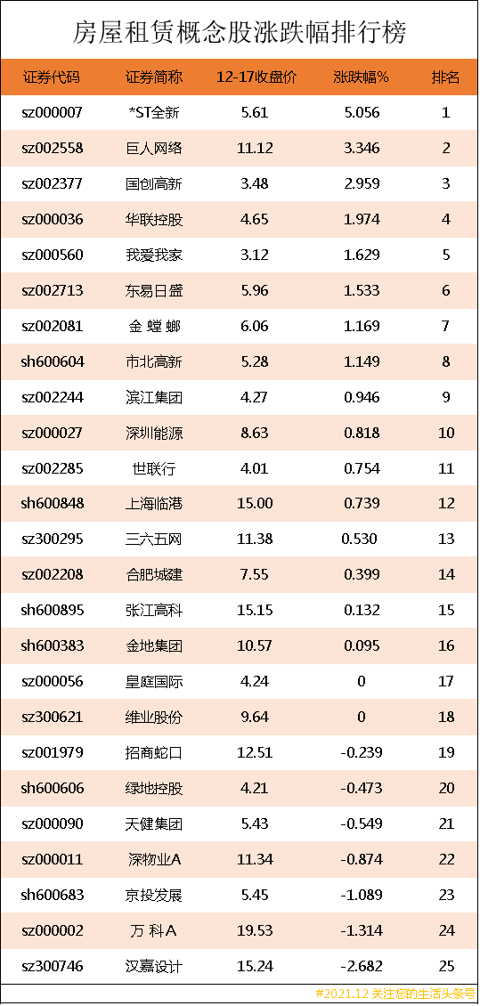以上就是为读者们带来的房屋租赁概念股涨跌幅排行榜的相关信息,本文是根据有关数据及近期事件所撰写分析文章,并不构成投资建议,据此操作,风险自担!(本文属于非商业性文章)