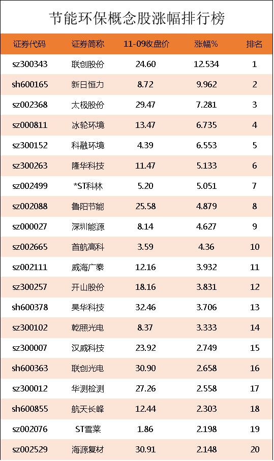 节能环保概念股涨幅排行榜