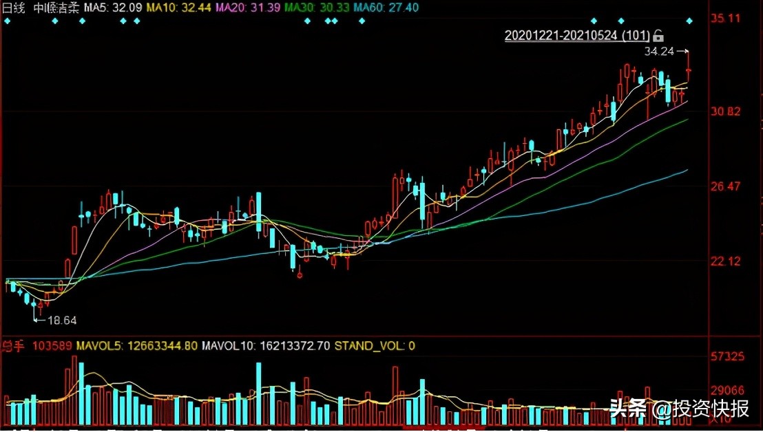 从今年以来的股价表现来看,股价涨势凶猛。截止到今天,股价已经来到了34.24元,在不足六个月的时间内,区间累计涨幅已经超60%,而且当前技术上呈现量价齐升的单边上涨态势,多条均线发散向上走。