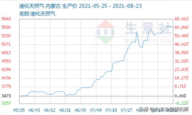 目前,国内液化天然气(LNG)价格,与去年同期相比上涨120%。美国天然气期货合约价格是去年的两倍,亚洲过去一年暴涨了6倍,欧洲14个月内疯涨10倍。