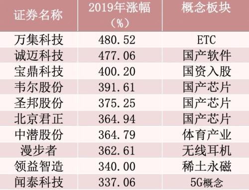2019年上涨幅度最大的10只个股(剔除2019年新上市个股)