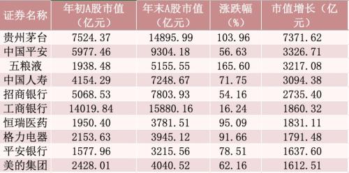 市值增加绝对值最大的10只个股,同样让投资人尤其是机构投资者赚得盆满钵满: