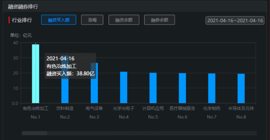 医美概念第一妖股金发拉比,虽然遭遇特停,但是板块热度依旧不减,龙二热景生物(688068)五天股价翻涨148%,四月以来股价上涨近4倍,妖性比金发拉比有过之而无不及。而热景生物暴涨除了超上医美概念的炒作风口外,最主要的还是其“预增王”的身份加持,上回我们讲到它业绩增涨近1300倍!所以金发拉比被停了,它却没有,这这也使得攻医美概念炒作不那么快终结。此外龙三新华锦(600735)也4连板,它不仅是二胎+医美双概念,还是石墨烯标的股,上周融资客对有色板块加码38.8亿,新华锦自然也被资金利好驱动。