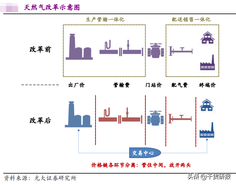 而我国的天然气产业由于历史原因形成了“生产管输一体化”、“配送销售一体化”的神奇格局。
