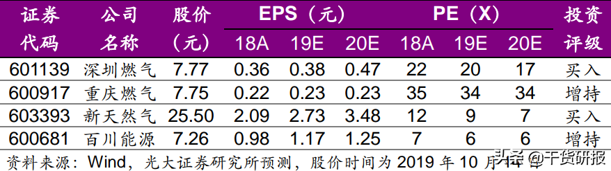 光大证券认为,国家石油天然气管网公司的成立将成为行业近期热门事件, 有望重构天然气市场竞争格局。在管网公司渐行渐近、叠加传统冬季保供的背景下,需重视四季度燃气主题投资机会,并关注北方采暖期内燃气公司毛差的边际变化。光大证券重申燃气行业“买入”评级,建议精选优质城燃标的,推荐深圳燃气、重庆燃气、新天然气、百川能源。