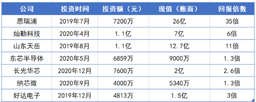 以纳芯微为例,按预测发行价市值仅30亿元,但分析普遍认为纳芯微上市后市值可达200亿-300亿元,也即哈勃投资的持股市值可达5亿元,回报倍数超过10倍。