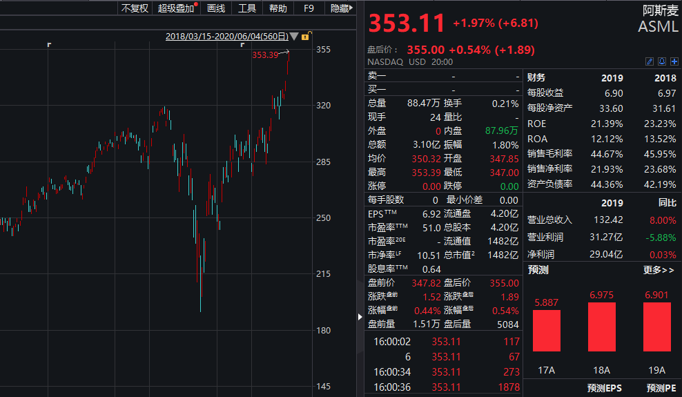 全球光刻机巨头阿斯麦市值突破万亿元大关。