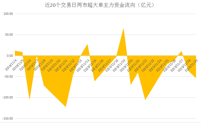 近20个交易日两市超大单主力资金流向