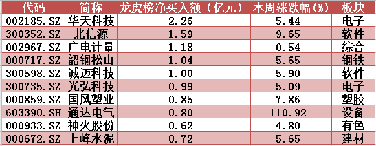 本周龙虎榜净买入个股前10名