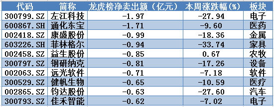 本周龙虎榜净卖出个股前10名