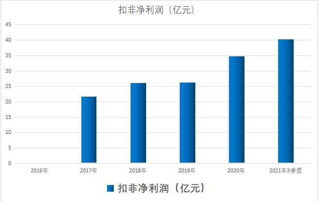 公司的扣非主营利润,从2017年的21亿,增长到了2020年的34个亿,