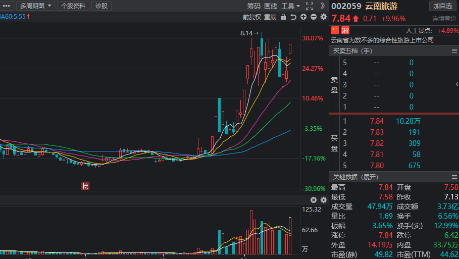 云南旅游:总市值为72.19亿元,市盈率为40.58倍,机构预测2021年净利润增幅达30.54%