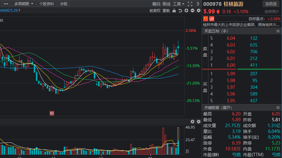 桂林旅游:总市值为20.92亿元,市盈率为-8.87倍,机构预测2021年净利润增幅达77.48%