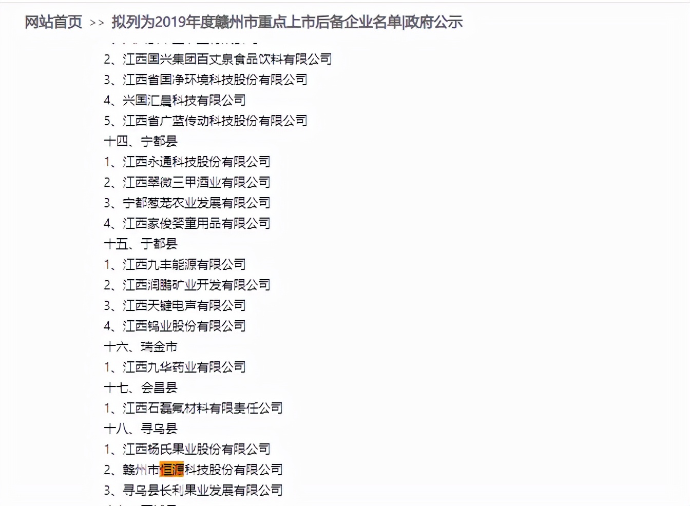 公司也是2019年度赣州市重点上市后备企业名单之一。