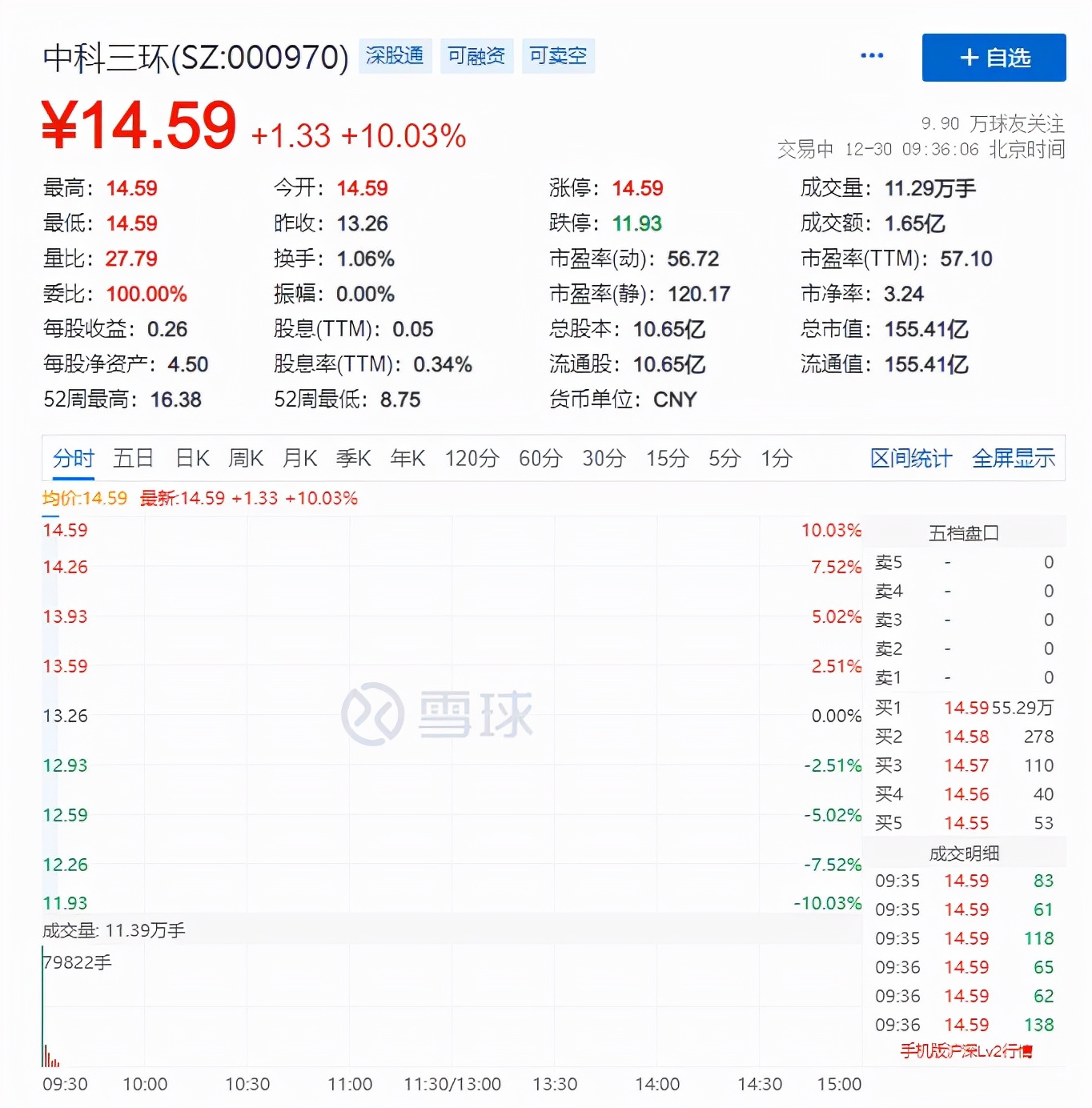 今天,稀土永磁概念股中科三环(SZ:000970)一开盘就涨停。