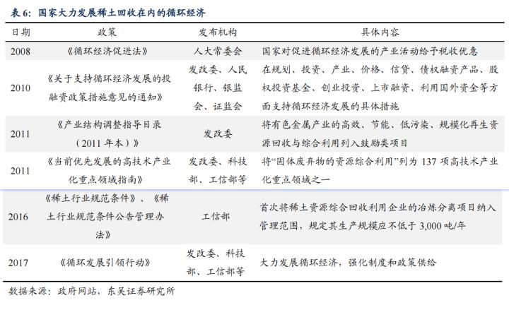 国家在过去十多年内出台了大量的法律法规和优惠政策来大力扶持发展循环经济产业,我国稀土产业也已经将推动资源节约和综合利用工作作为稀土产业升级调整的优先方向。