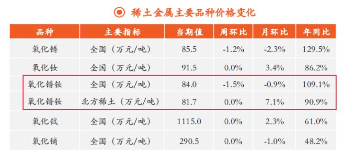 其中钕占比约为 21%,镨占比约为 7%,两者为主要的稀土成分。