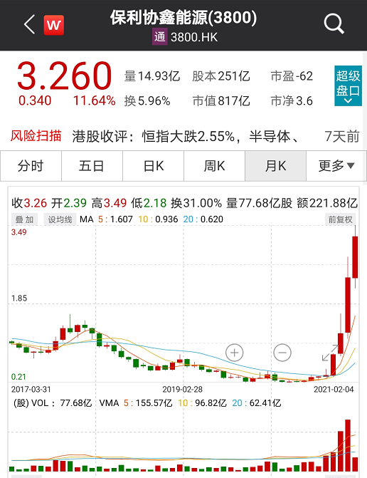 受近400亿长期合同订单影响,保利协鑫能源股价4日再涨11.64%,总市值达817亿港元。