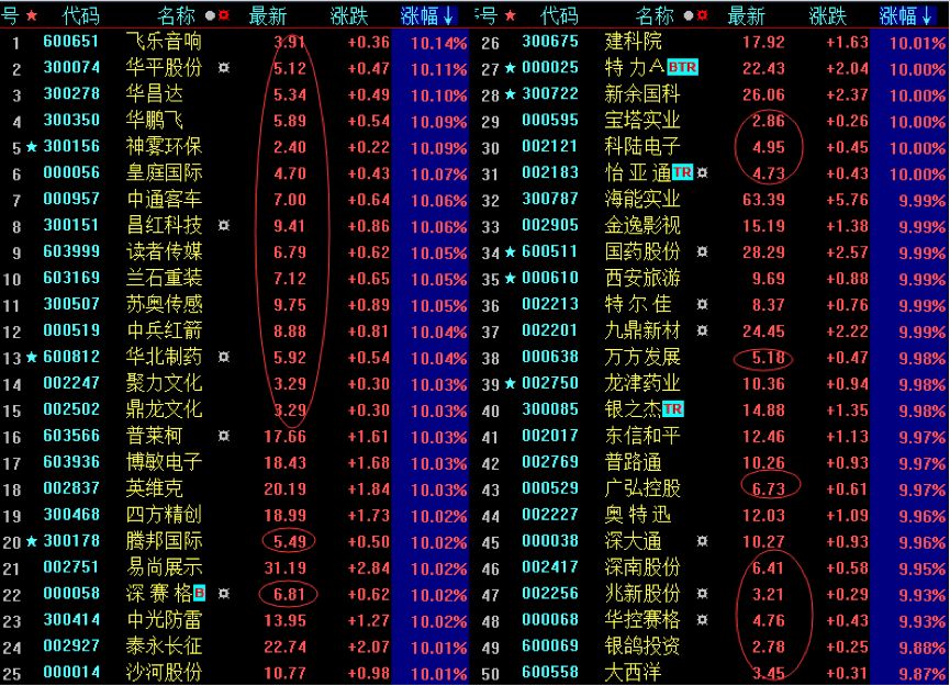 2.涨的最好的股票是什么股票,茅台?深圳?妖股?翻了一下,发现最好的是低价股,股价在10元以下的股居然占了涨停的半壁江山,当然这里面最好的是2-3元的股,所以低价+超反,可能会很强;当然当低价+超反走强的时候,往往高位股会出现恐慌,或者资金谨慎。