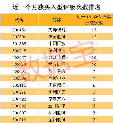 券商机构更关注谁?数据显示,近一个月来,32只个股获得券商机构买入型评级,其中6只个股获买入型评级在10次以上,分别是先导智能、洋河股份、中国国旅、保利地产、分众传媒、索菲亚。先导智能最受券商机构青睐,近一个月获买入型评级多达13次。其次是洋河股份,近一个月获买入型评级达12次。