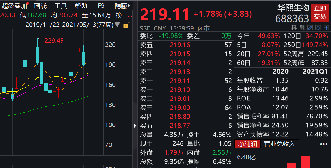 另一边,华熙生物、山西汾酒(600809.SH)、康泰生物(300601.SZ)已完成大幅度的修复式上涨,最新收盘价较年内最高价回撤幅度均已缩小至个位数。其中,华熙生物、康泰生物4月以来均累计大涨逾40%。截至最新收盘,华熙生物股价报219.11元,较最高点229.45元仅下跌4%左右。