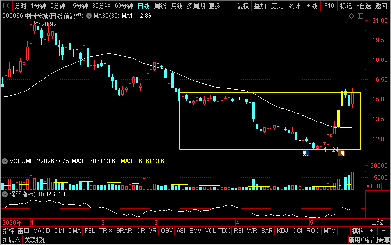 中国长城,最近连续大涨一举由之前的下降阶段,转为横盘整理阶段。不过经过最近的大涨,价格也差不多来到了前期密集成交区的阻力区域的阻力位。