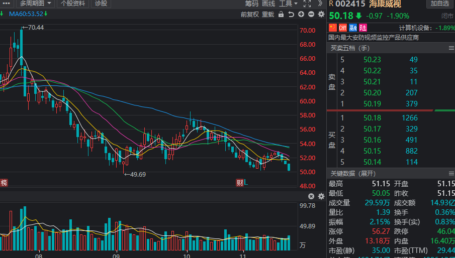 海康威视:11月北向资金净买入量为249.96万股,总市值为4775.26亿元
