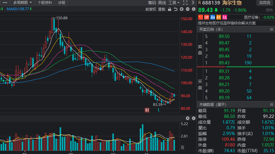 海尔生物:11月北向资金净买入量为133.24万股,总市值为289.23亿元