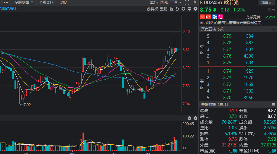 欧菲光:11月北向资金净买入量为2211.26万股,总市值为289.36亿元