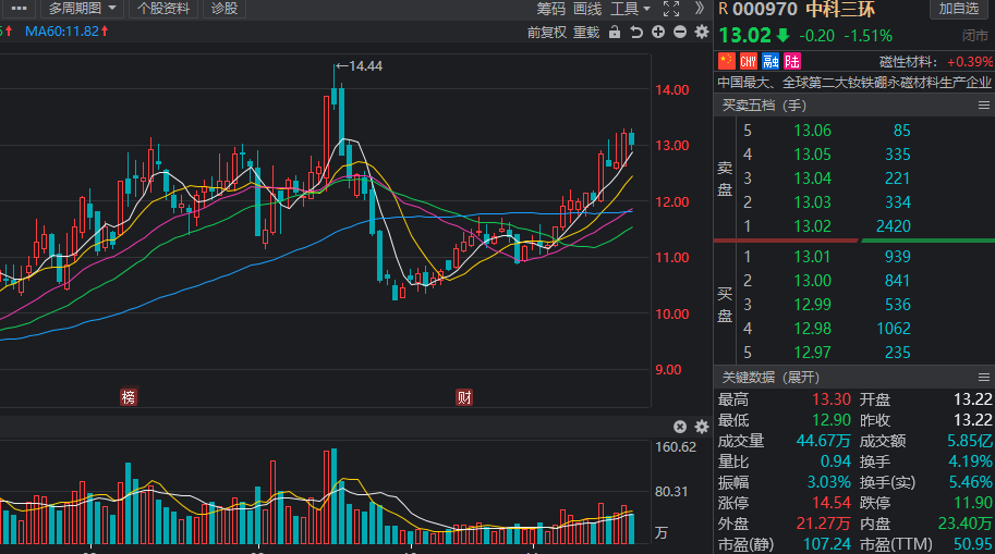 中科三环:11月北向资金净买入量为148.93万股,总市值为140.82亿元