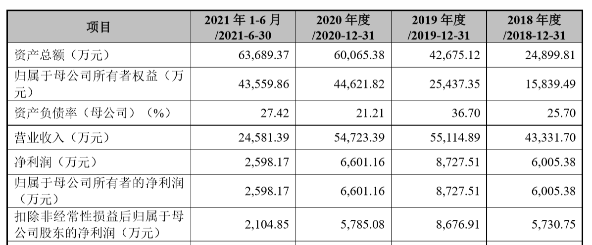 招股书显示,2018-2020年,护童科技的营收分别为4.33亿元、5.51亿元、5.47亿元,同期净利润分别为0.6亿元、0.87亿元和0.66亿元。
