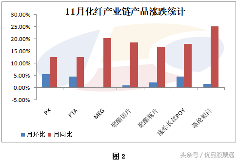 三、11月份,聚酯产业链市场震荡走高,月内聚酯原料PTA供需基本面支撑强劲,下游聚酯开工虽维持高位水平,但刚需补货情况为主,另外终端订单偏少,产销表现偏弱。