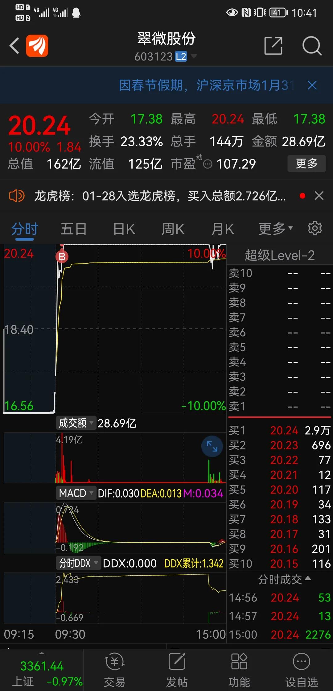 昨晚数字经济出利好,金融标准化“十四五”规划出炉,今天开盘整个数字经济板块抢得比较厉害:恒宝股份顶一字,翠微股份高开,指数在上午10点左右的那波下跌,也没能砸开这两个股票,板块全天有40只个股涨停,直接高潮,因此明天板块容易有分歧、淘汰赛(可以参考前两天的基建板块)。分歧阶段关注两个票,一个是恒宝,一个是翠微,前者属于情绪龙头,后者属于板块龙头:(1)高度够高;(2)前几次给人感觉涨不起来了,结果又能回光返照;(3)前有深南股份、后有恒宝股份帮忙开路。既然翠微是龙头而且也有先手(1月28日打板买入),那就没必要介入其他个股,躺好等它走完就行。