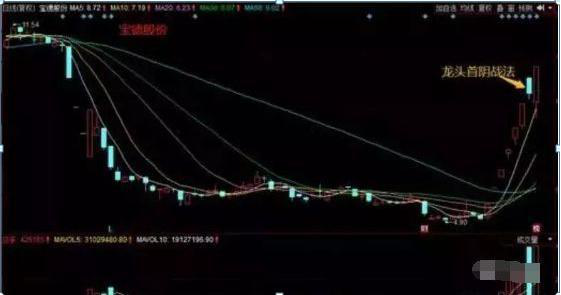 在大盘大跌时,最好判断龙头首阴的时刻。特征就是大盘上午跌,它还上涨。大盘再一路下跌,而它跌破分时均线又上拉回来。大盘尾盘狂泻,它也跟着泻,而且是无奈的泻。强势了一整天就在尾盘支撑不住了。这给出一个信号,它还有上涨动能,只是大盘不给面子,特别是资金的宠儿,基本上都有这个特点。
