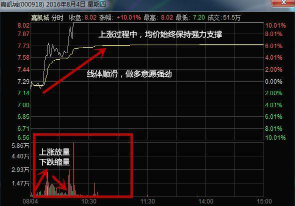 4、遇到股市暴跌,个股出现平稳走势,并且成交量急剧放大。