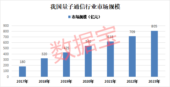 中共中央政治局就量子科技研究和应用前景举行第二十四次集体学习。据业内预测,到2023年,我国量子通信行业市场规模将达到805亿元。