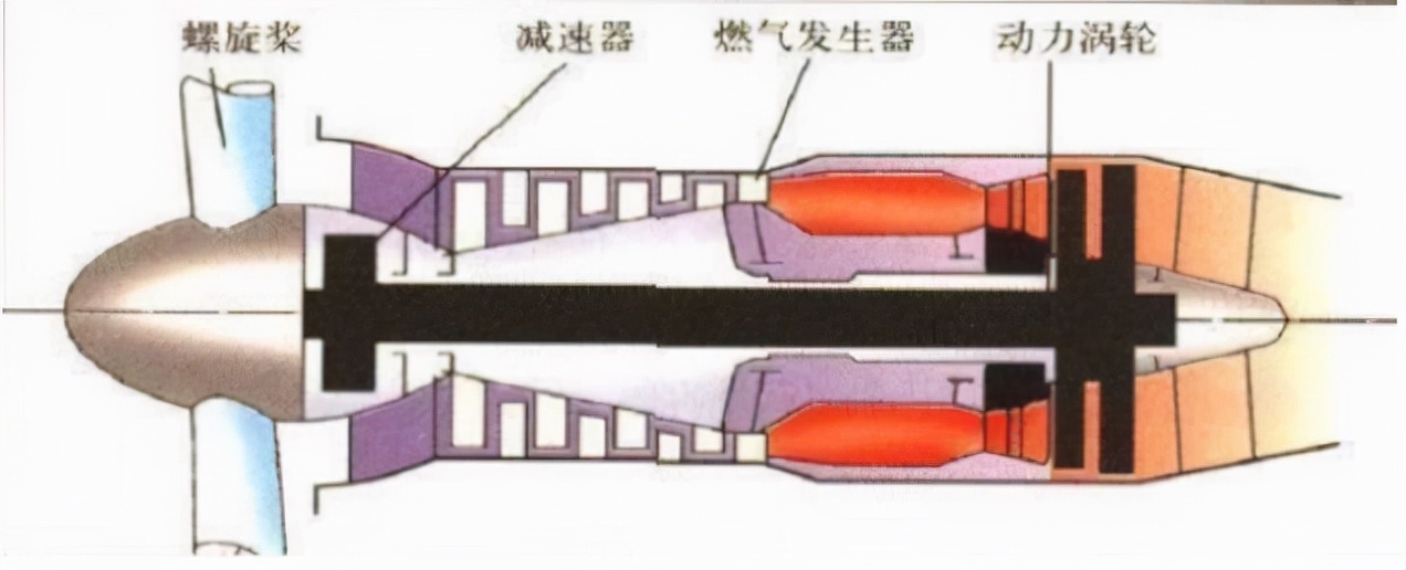 涡轮螺旋桨发动机的结构与涡轮风扇发动机类似,但把涡扇发动机的风扇换成了螺旋桨,其工作原理是将能量转化为轴功率驱动螺旋桨旋转,从而产生推力。涡轮螺旋桨发动机具备耗油率低、推力大、经济性高的优点,但是其螺旋桨转速受限,导致飞机速度受限(小于900km/h,标准大气压和15℃下的音速是1224km/h),所以涡轮螺旋桨发动机大多应用于运输机。