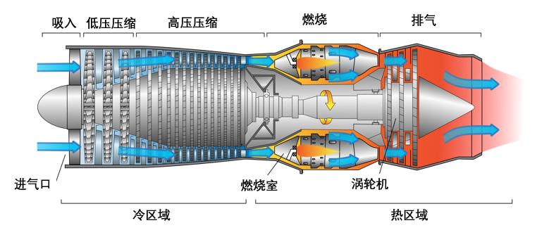 20世纪50年代以后,航空燃气涡轮发动机成为了航空发动机的主流。航空燃气涡轮发动机主要包括涡轮喷气发动机、涡轮风扇发动机、涡轮螺旋桨发动机、涡轮轴发动机、桨扇发动机五种类型。而总的来说,目前应用最广泛的是涡扇、涡桨、涡轴这三款航空发动机。