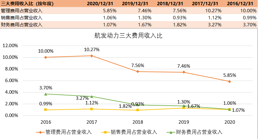 公司过去几年的费用管理情况较好,三费占比都在不断降低。