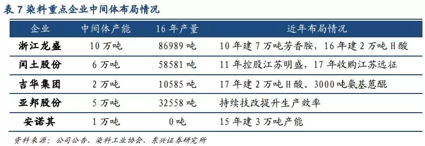 1、分散染料:浙江龙盛、闰土股份、吉华集团、雅运股份、蓝丰生化、航民股份、建新股份、安诺其、江苏吴中等;