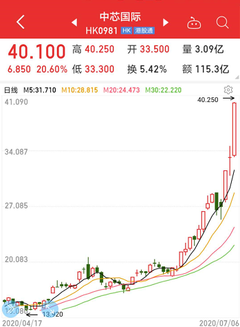在上述利好因素影响下, 中芯国际港股高开高走,盘中最高涨幅超21%,股价突破40港元。截至收盘,中芯国际涨20.6%报40.1港元,市值达2285亿港元,该股今年以来累计涨超230%。